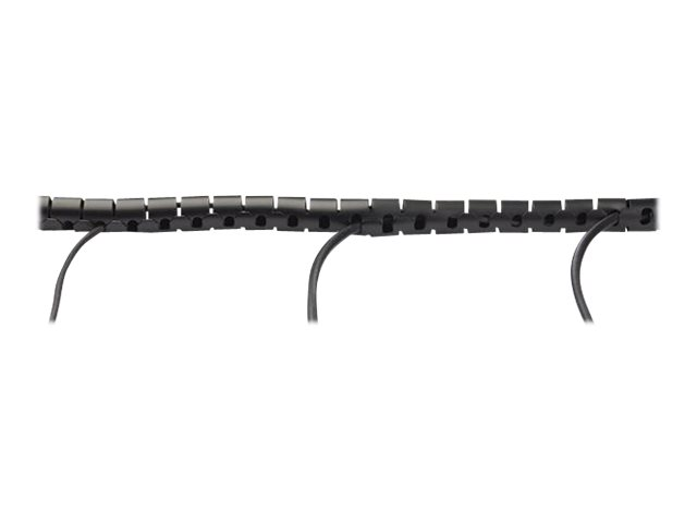 - Information Here's a fast, easy solution to organizing your cables. This spiral cable management sleeve wraps around your cables to tidy up your work area, while protecting your cords from abrasion. The expandable sleeve is conveniently sized: This coiled cable sleeve is also available in other diameters and lengths to suit your needs: 25 mm Diameter x 1.5 m Length (1" x 4.9') - CMSCOILED; 25 mm Diameter x 2.5 m Length (1" x 8.2') - CMSCOILED2; 45 mm Diameter x 2.5 m Length (1.8" x 8.2') - CMSCOILED4. The flexible and expandable cable cord organizer will hold multiple cables and gauges, from thin phone chargers to thick power cords. Create a tidy workspace in minutes to keep your cables neat, and still accessible, within the attractive coiled sleeve. It's a great way to provide a neat appearance for cables and equipment wiring in offices, lobbies, boardrooms, and customer-facing areas. Keeping your cables in a cable management sleeve keeps them concealed, and protects them from wear and tear under your TV or desk. Open up the side of the cable tube concealer any time, to access, add or remove cables. You can also create a breakout of cables at any point in the sleeve to re-route or replace cables. The wire management sleeve comes with a time-saving cable loading tool. You simply slide the tool along the spiral wrap to guide your cables through the cable hider sleeve. You can also trim the sleeve to the desired length. Made of durable polyethylene, the cable cover sleeve is easily reusable.