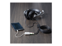 - Information Have you recently purchased a newer laptop or Ultrabook and now you can't figure out where to plug in your favorite headset? Most new laptops and Ultrabooks come equipped with a single 3.5mm 4-position (4pin) audio port that supports both audio input and output. A great number of headsets on the market come equipped with two separate headphone and microphone connectors that are not compatible with this new configuration. The MUYHSMFFADW white headset adapter features two 3.5mm 3-position ports that provide a separate headphone and microphone connection that can be connected to the single audio port on your laptop. Alternatively, you can also connect a separate microphone and powered speakers if you prefer to use Skype or chat online without using a headset. Simply connect the headphone plug from your headset into the audio output port marked with the headphone symbol, and connect the microphone plug into the audio input port marked with the microphone symbol. Plug the adapter into the audio port on your laptop and you're all set. Want to work or game without using a headset? You can also connect a microphone and powered speakers to your laptop using the adapter. Just plug in your microphone into the audio input port marked with the microphone symbol, and plug your powered speakers into the audio output port marked with the headphone symbol, and connect the adapter to the audio port on your laptop. Are you travelling for work or taking a trip? The headset adapter features a compact and sturdy design that makes it the perfect solution for mobile applications. Tuck the adapter in with your tablet or slip it inside another carrying case. It works great with tablets and smartphones that have a single audio port. Just connect the headphone and microphone plugs from your headset into the adapter, connect the adapter to your mobile device and start talking. This adapter is not a headphone splitter or Y-cable. It cannot be used to split the audio output to two separate sets of headphones or speakers. Some laptops and mobile devices will not work with all external microphones. This is typically caused by an impedance mismatch between the microphone and the device. This is due to hardware incompatibility and is not a limitation of the MUYHSMFFADW adapter.