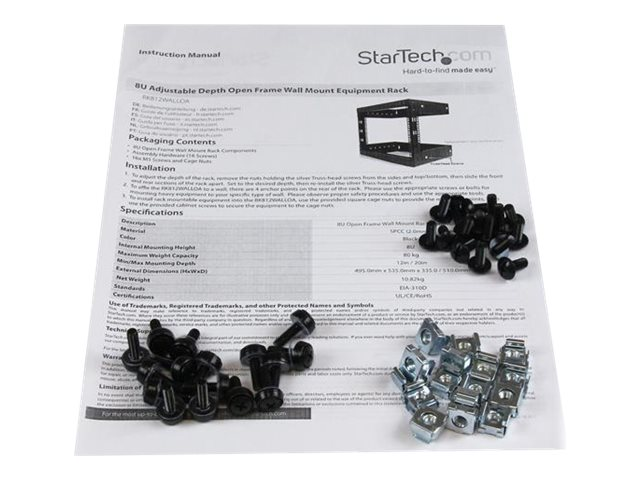 12" Deep 2 Post Open Frame Server Room Rack for Data/AV/IT/Computer Equipment/Patch Panel with Cage Nuts & Screws 135lb Capacity, Black (RK812WALLO) - Rack - black - 8U - 19" - for P/N: CABCAGENUTS6, CABSCREWM52, CABSCREWSM6, CABSCRWM520, CABSCRWM620, CABSCRWS1224