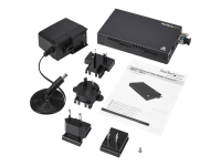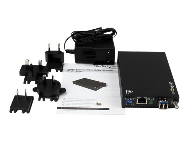 - Information Convert and extend a Gigabit Ethernet connection up to 20 km (12.4 mi) using single-mode LC fiber cable. This Gigabit Ethernet to fiber media converter is a cost-effective way to extend your network, or extend the distance between two devices by up to 20 km (12.4 mi.). Fiber network connections provide greater distance and security, with less electromagnetic interference (EMI) than typical RJ45 copper-based networks, making it perfect for IT professionals and secure setups in government, business, or educational applications. This versatile copper-to-fiber converter supports standalone operation, or alternatively it can be installed into the StarTech.com Rackmount Chassis (ETCHS2U - sold separately), giving you more options for integration into your existing network. The card module can also be inserted back into the ET91000SM20 enclosure, plus it's compatible with enclosures from other StarTech.com ET91000 series media converters (sold separately). The converter features a pre-installed Gigabit SFP transceiver with LC connectors. Should your network infrastructure change in the future, you can easily swap and replace the module to adapt the media converter to your new network requirements. With flexible integration and connectivity up to 20 km away, you can provide network access to remote areas in other buildings, or in areas where Wi-Fi is unreliable or unavailable. This heavy-duty fiber media converter is designed for maximum reliability. It features a metal (steel) enclosure, so it can withstand the demands of harsh environments such as factories or warehouses. Plus, by relying on this more durable fiber media converter, you can reduce the strain on your existing copper-based network equipment and potentially extend the life of those devices, which helps save future expenses. This high-performance media converter supports a range of network setup and diagnostic protocols (for example, Link Fault Passthrough, Auto Laser Shutdown (ALS), and Auto MDIX, so you can set up and troubleshoot your network easily. If your existing network consists of RJ45 copper-based devices and cables, you might not be ready for future network expansion. Because the newest fiber-based network switches feature SFP ports more often than RJ45 ports, you might need a converter to bridge your copper and fiber networks together.