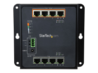 - Information Connect up to 8 different GbE (4 PoE+) devices, using this IP30 industrial Ethernet switch with intelligent Layer 2 management. Easily deploy or scale your network with this Gigabit Ethernet switch, by adding eight copper Gigabit Ethernet (GbE) connections, including four PoE+ ports. This IP30 industrial network switch provides intelligent Layer 2 management. Its rugged, compact design and wall-mount option with front access make it ideal for demanding applications, even where space is limited. This Gigabit Ethernet switch lets you expand your network by connecting up to eight RJ45 devices (four PoE+). The 8-port switch enables up to eight users to share files and devices, such as printers and scanners, over a LAN connection, by enhancing your existing network capacity with additional ports. The switch gives you the freedom to place your equipment in locations where power outlets are not available, with support for Power over Ethernet Plus. The network switch provides abundant PoE power, with up to 30 watts for each PoE port (120W budget). With its compact design, you can wall-mount the Gigabit switch to provide convenient front access to ports and indicators. It's ideal for a wide range of applications, including tight installation areas with significant electromagnetic interference, such as control cabinets and panels. The network switch is also DIN-rail mountable. The switch delivers efficient and stable performance, with Layer 2 management capabilities. This lets you control packet traffic on a busy network, and customize your settings to achieve optimal network performance, offering improved efficiency and reliability. This rugged network switch features an IP30-rated metal housing and extended operating temperature range of -40°C to 75°C, which makes it ideal for a wide range of conditions. The sturdy metal enclosure offers durability, even in harsh industrial environments. With support for 10/100/1000Mbps transfer speeds, this managed switch supports full/half-duplex auto-negotiation, jumbo frames, and auto MDI/MDIX operation. This lets you connect your network devices quickly and easily, with little to no configuration required. To help prevent any unnecessary downtime, the switch features redundant 12-58V DC terminal block power inputs, which ensures seamless operation in the event of power dips or failures.